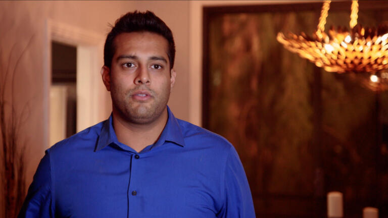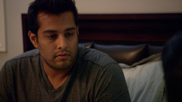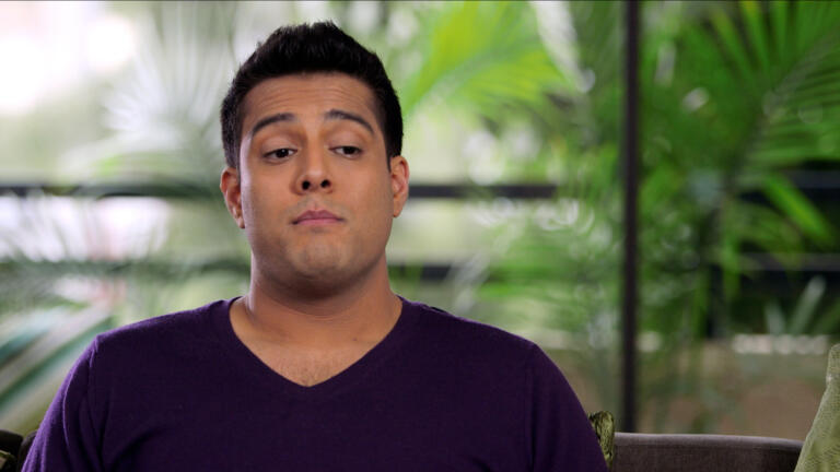 Veeral's sister hosts a dinner party that brings all three couples together for the first time.